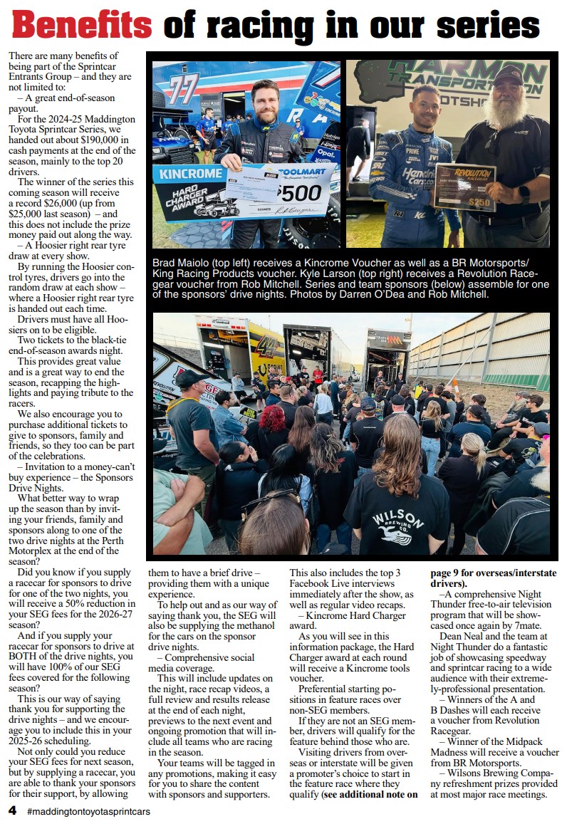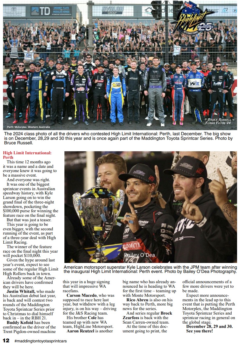 Solos, Sidecars, Speedcars, Super Modifieds are prominently featured, while there’s yesteryear stories on Australian and overseas competitors including one unlucky driver who went into Indianapolis Motor Speedway history for all the wrong reasons.
