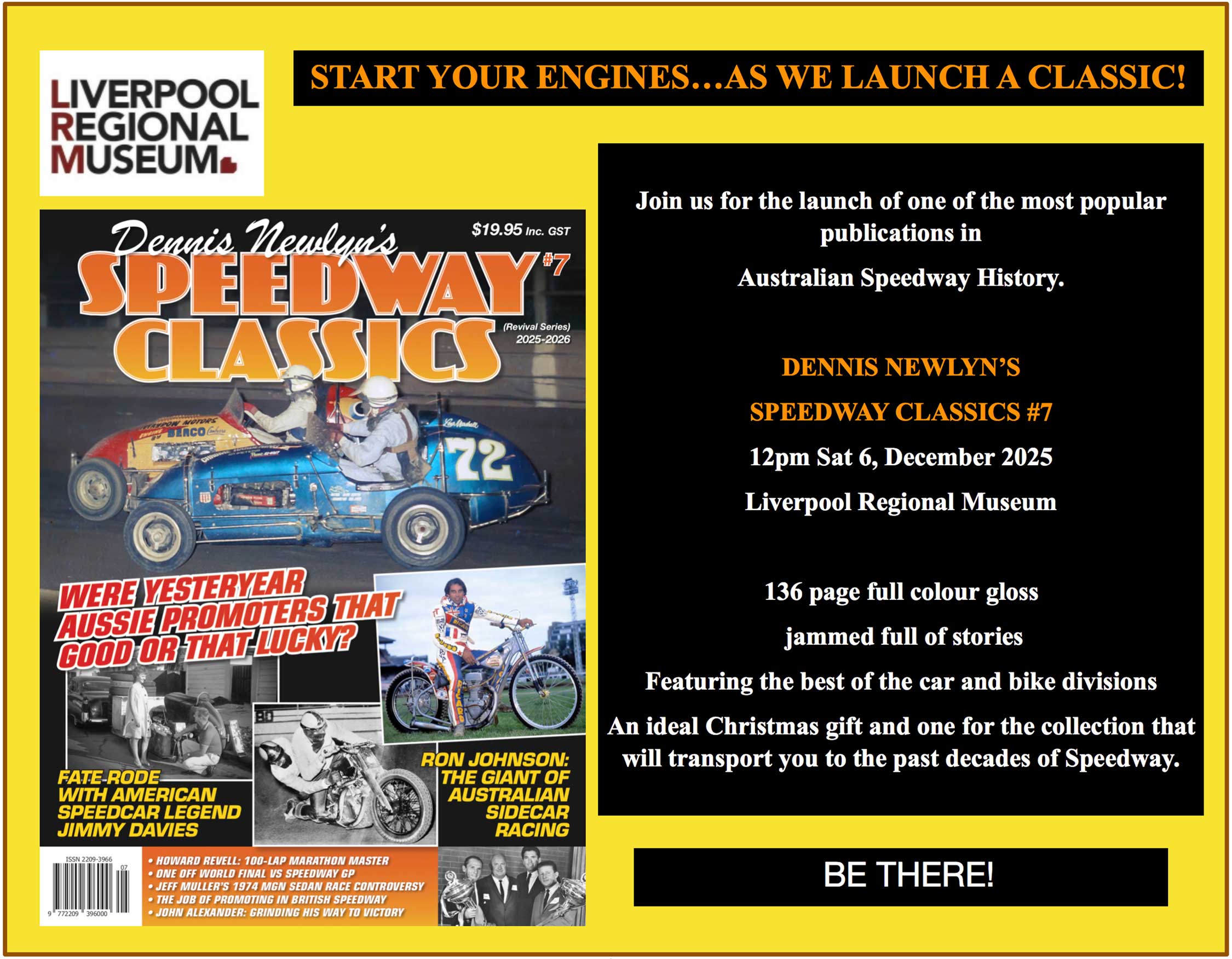 SPEEDWAY CLASSICS #7 MAGAZINE AVAILABLE IN ALL MAJOR NEWSAGENTS ACROSS AUSTRALIA EARLY DECEMBER AND VIA MAIL ORDER