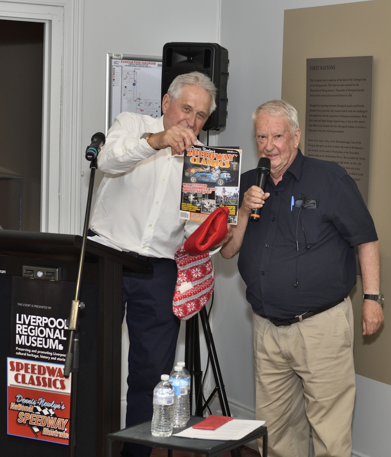 A big crowd was on hand to witness the launch of Dennis Newlyn’s Speedway Classics magazine #7 at Sydney’s Liverpool Regional Museum, Saturday, December 6.